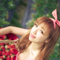摘草莓的粉可爱萌妹子女生