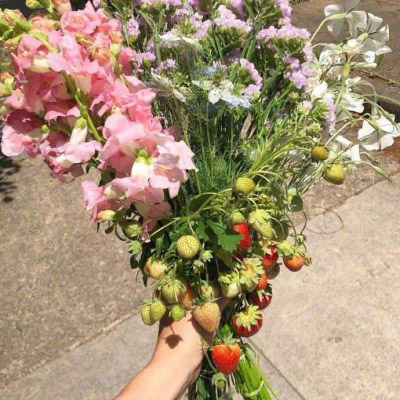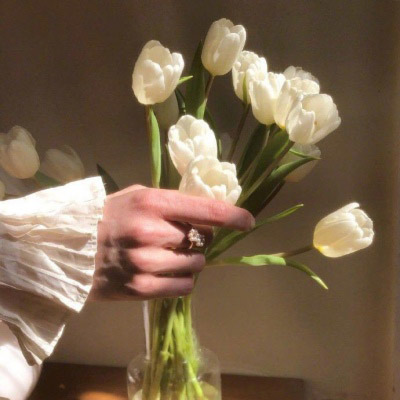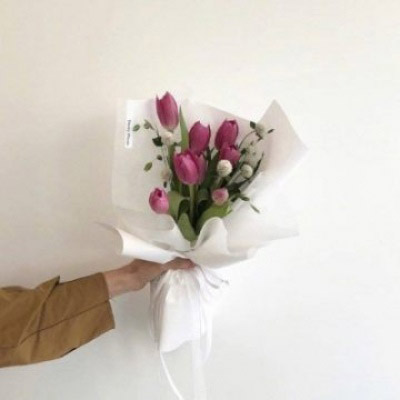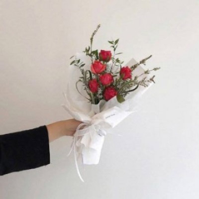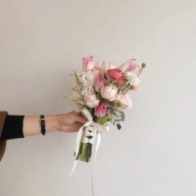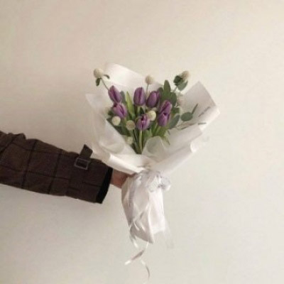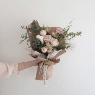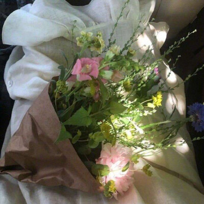 手拿一束花的唯美图片