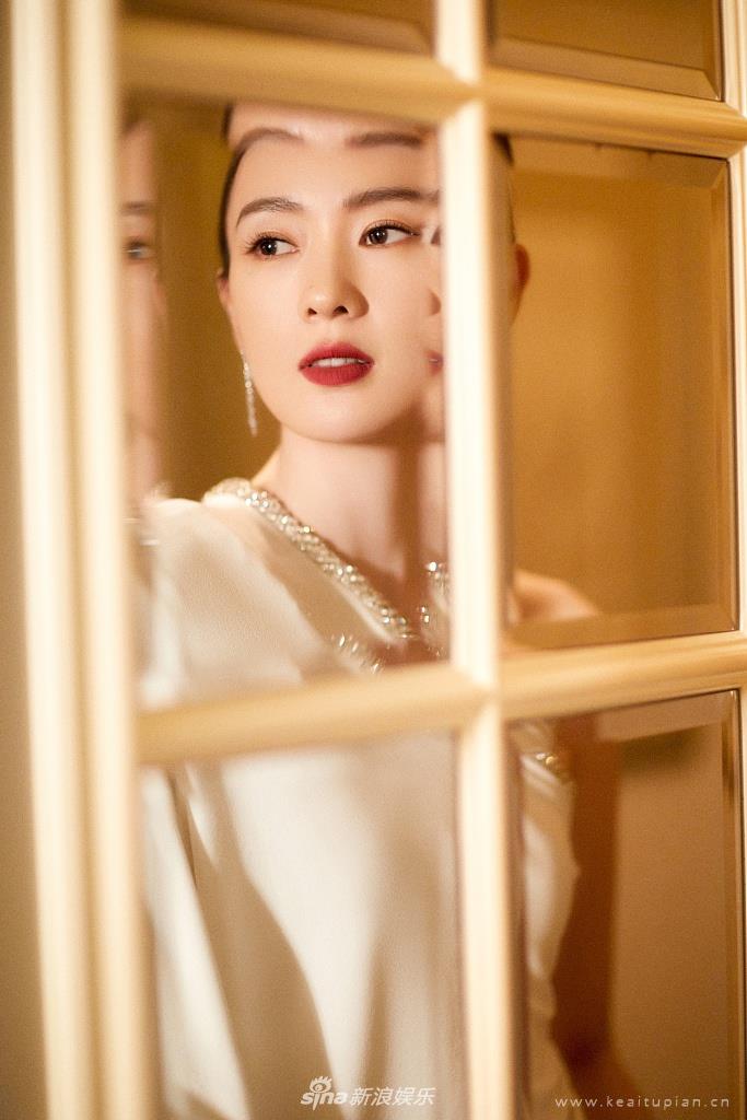 童瑶白色斜肩礼服端庄大方知性写真图片(2)