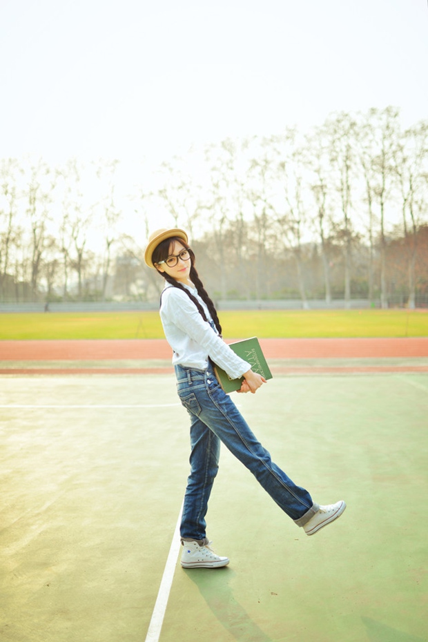 可爱草帽背带裤校园女生(3)