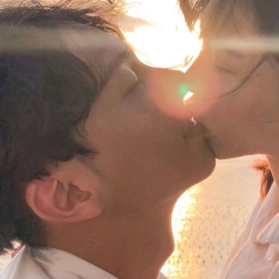 最热情侣头像一人一半接吻